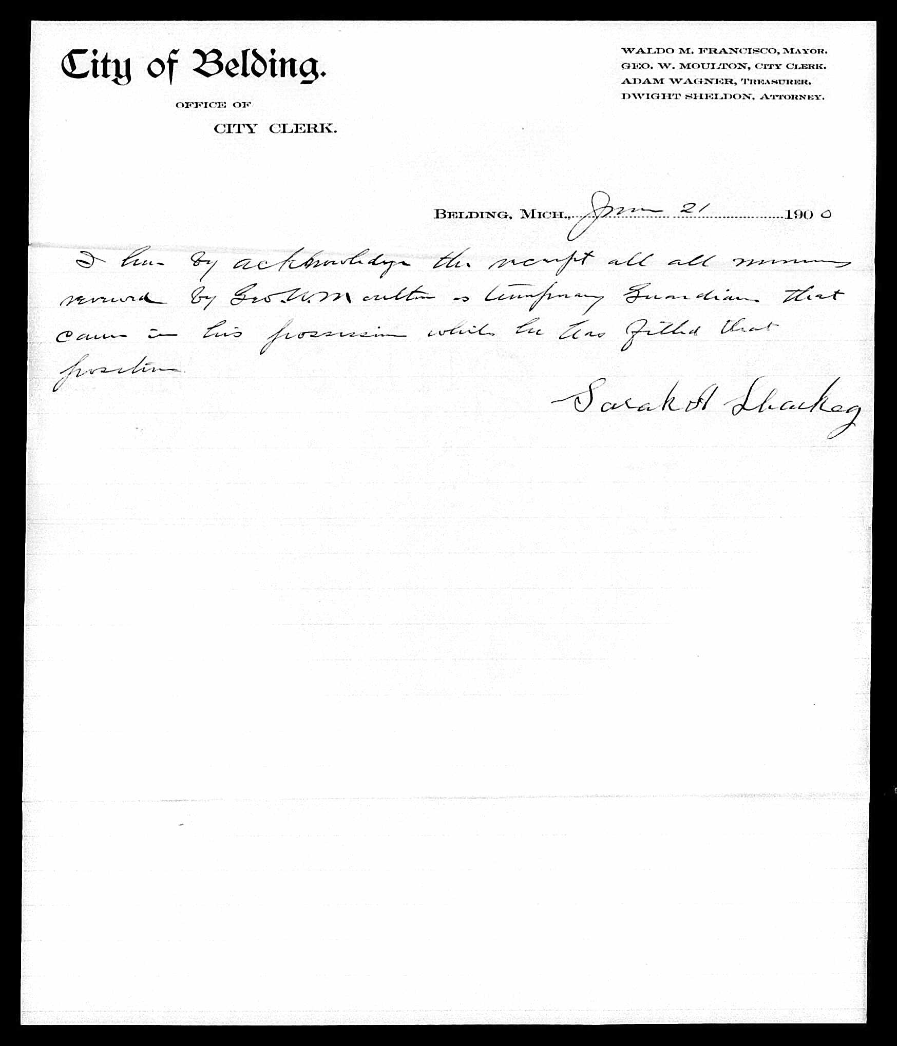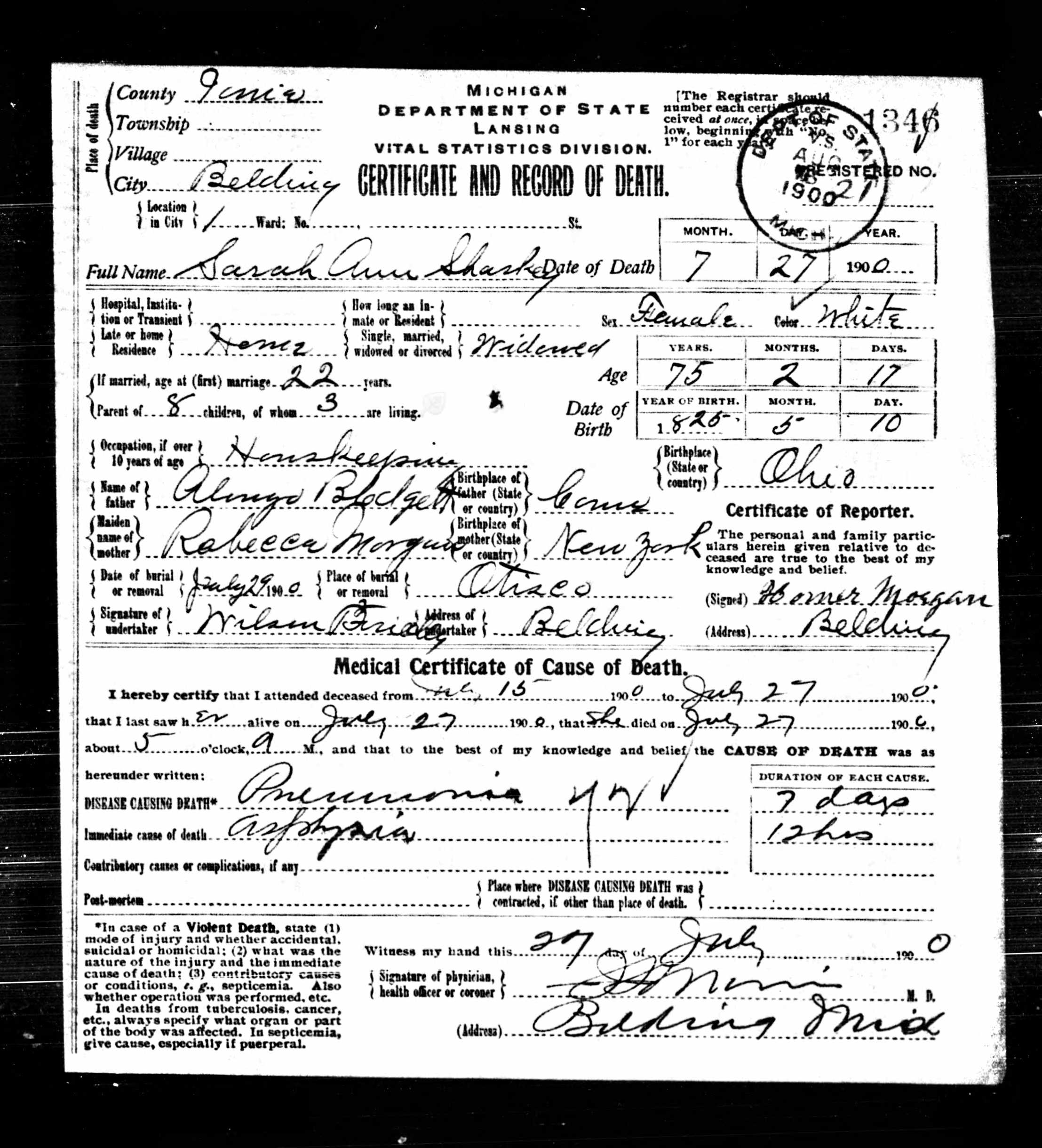 Death: 27 JUL 1900 Belding, Ionia Co, Michigan