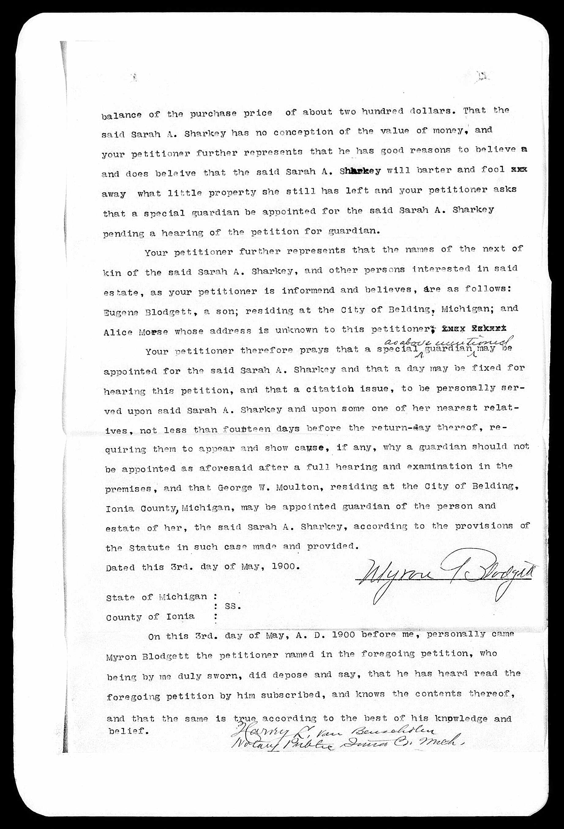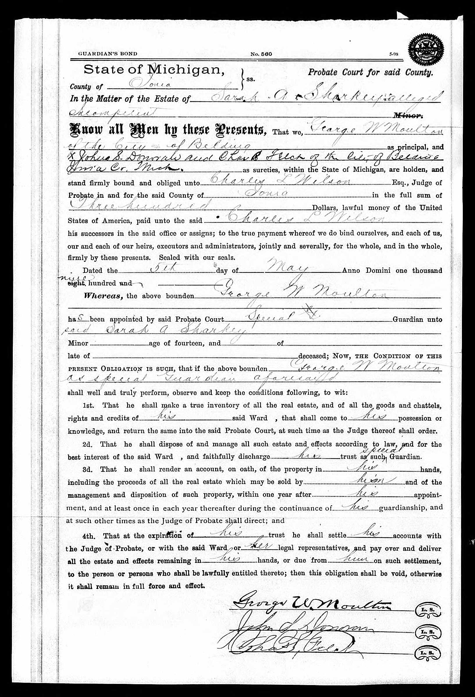 2nd Marriage: 03 JUL 1867 Otisco Twp, Ionia Co, Michigan to Thomas Sharky