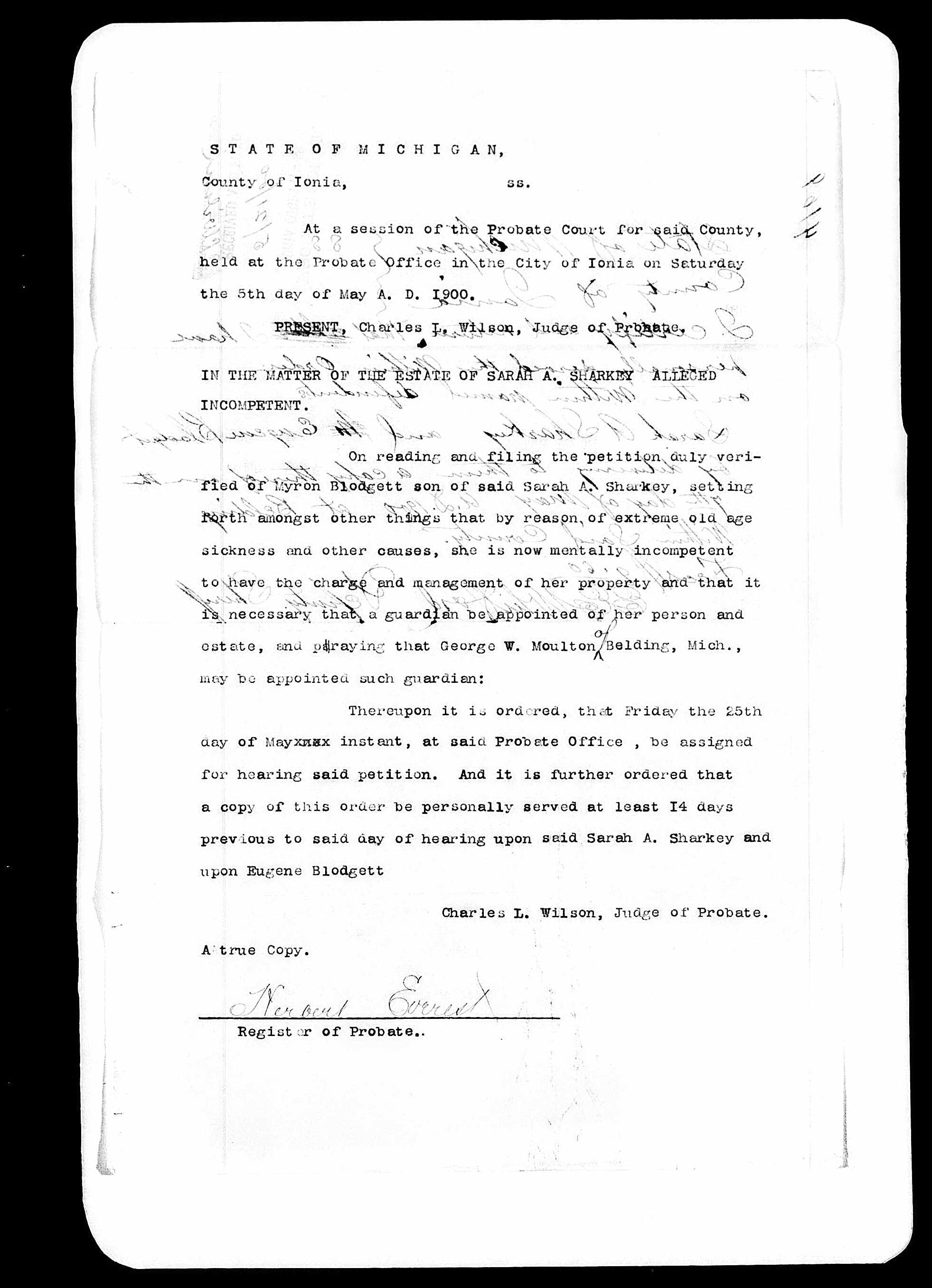Will: A guardian was appointed to Sarah because she wasn’t mentally competent any further. This was petitioned for by her son.