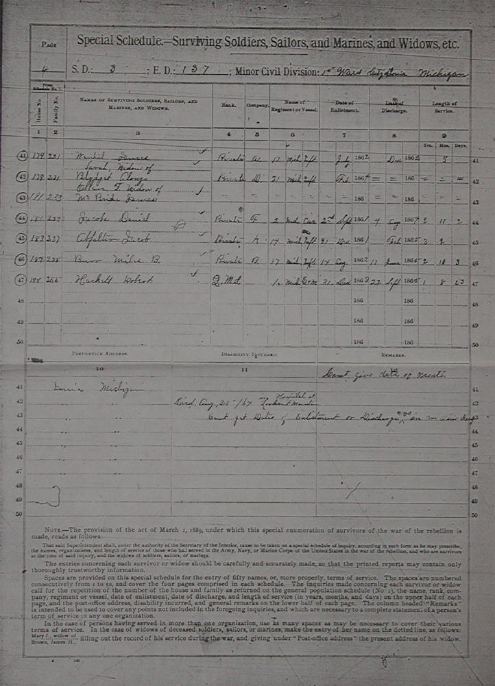 Note: Enlisted in Civil War – Found in Civil War Muster Rolls. Was a private in Michigan’s 21st Infantry, Company D