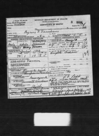 Death: 19 JAN 1897 Caledonia, Kent Co, Michigan