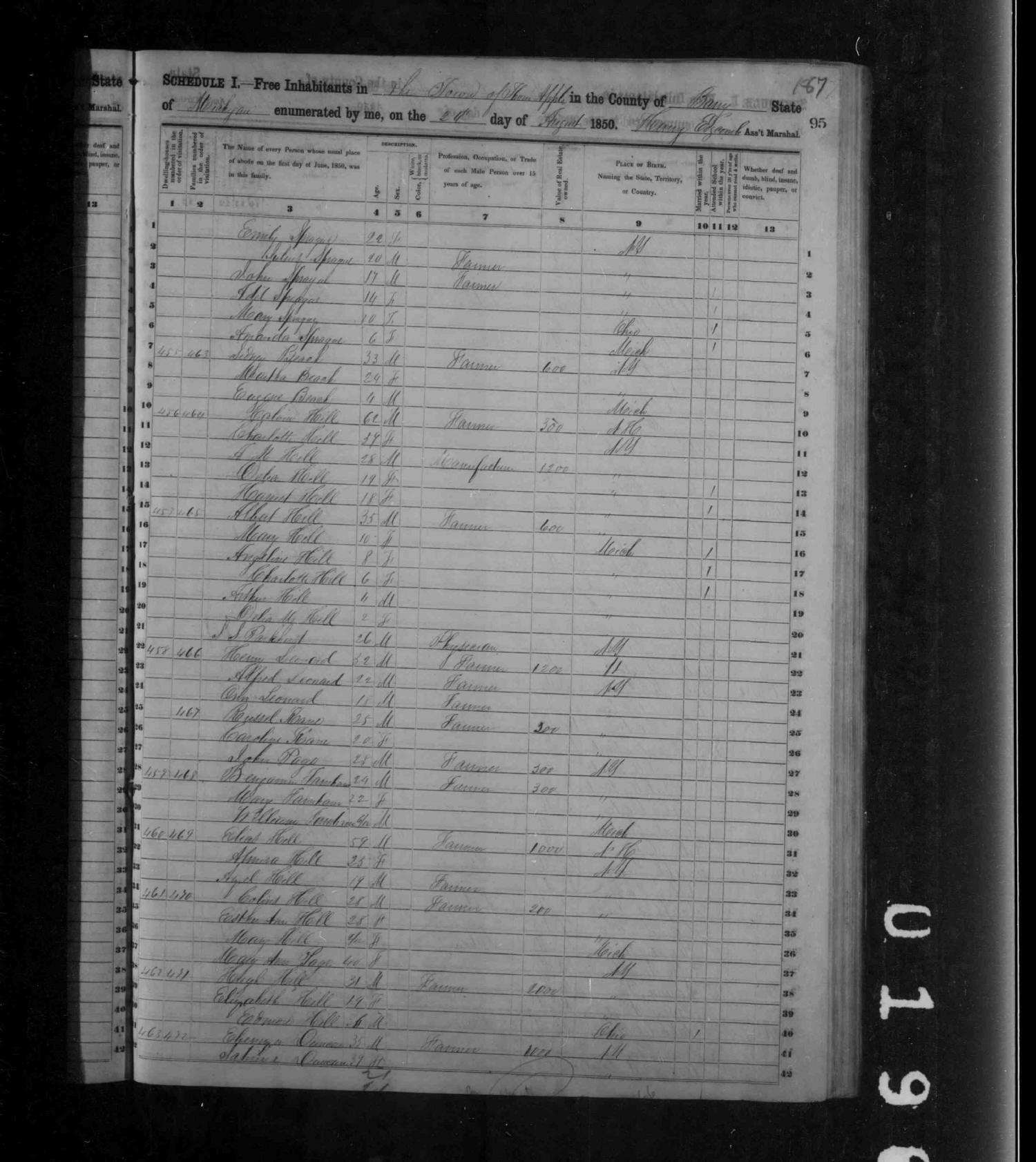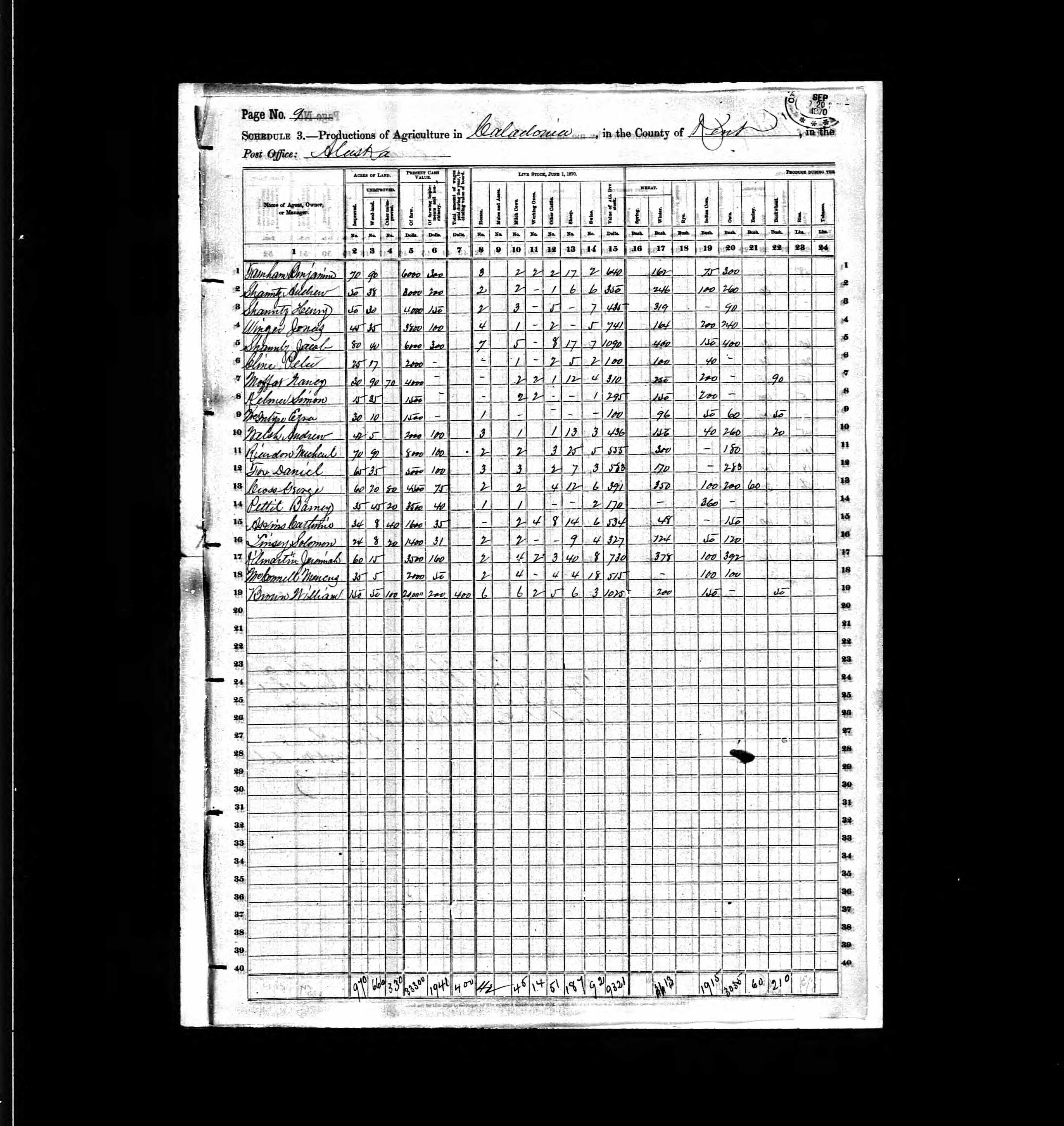 Note: 70 acres improved, 90 acres of woodland, $6,000 of farm, $300 of farm implements and machinery. 3 horses, 2 milk cows, 2 working oxen, 2 other cattle, 17 sheep, 2 swine, Value of all animals $640. 162 winter wheat, 75 Indian corn, 300 oats