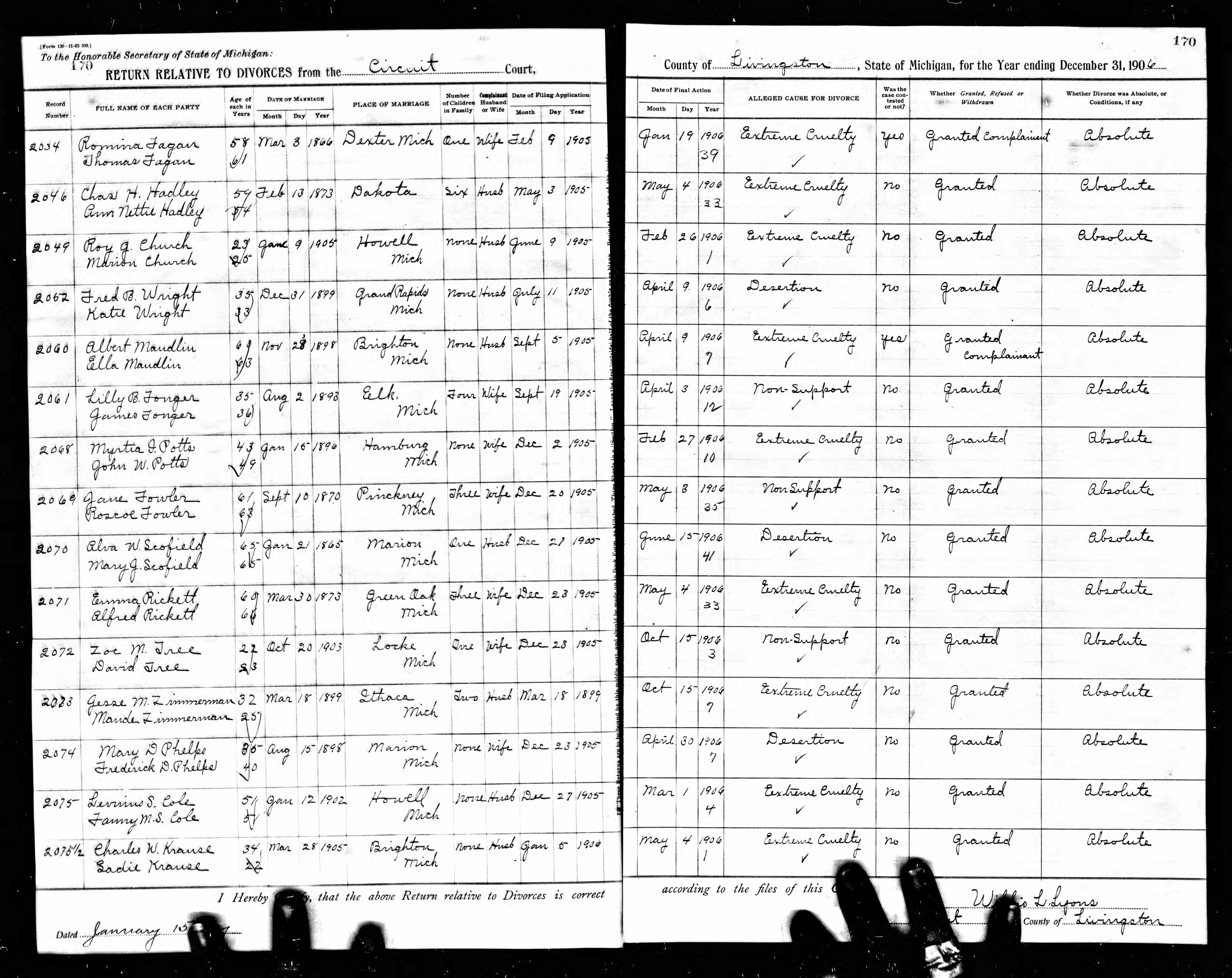 Details: Charles is the one who filed. The reason was for “extreme cruelty.” This sounds awful but the only reasons I see listed for anyone are “dessertion”, “non-support”, and “extreme cruelty.”