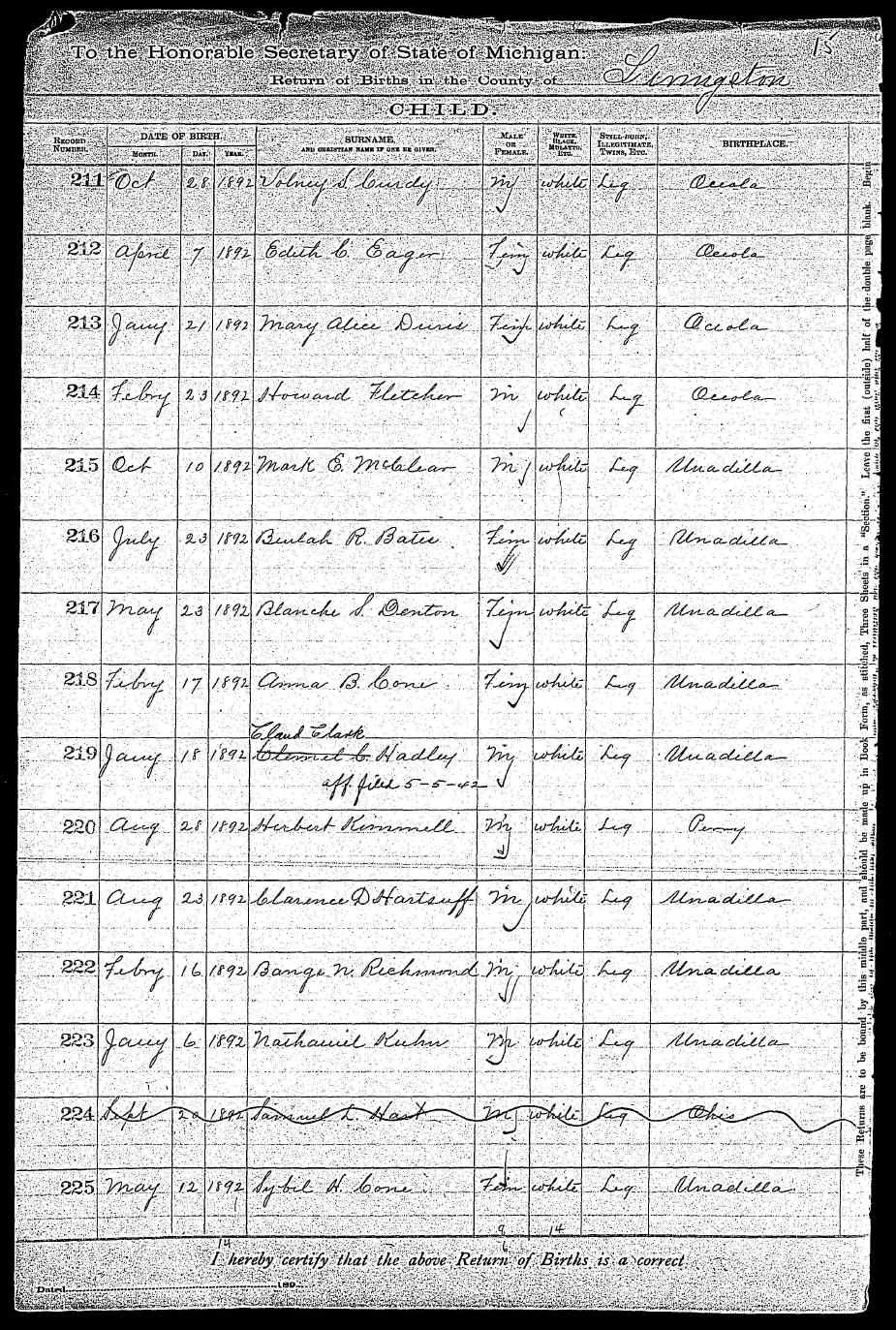 Note: 1880 States that Charles and Nettie’s parents were all born in New York. Charles is also listed as a farmer