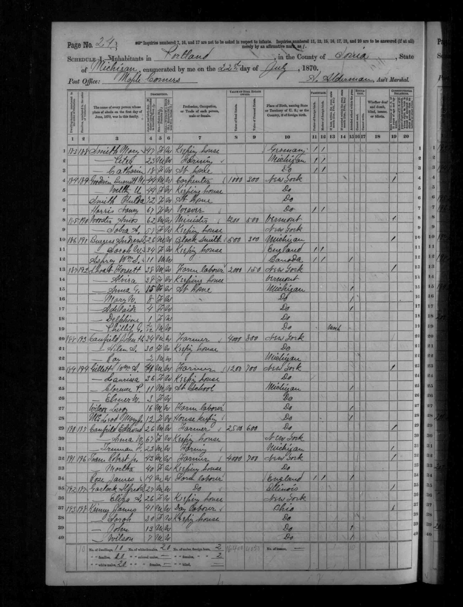 Burial: 1875 Portland City Cemetery, Ionia Co, Michigan