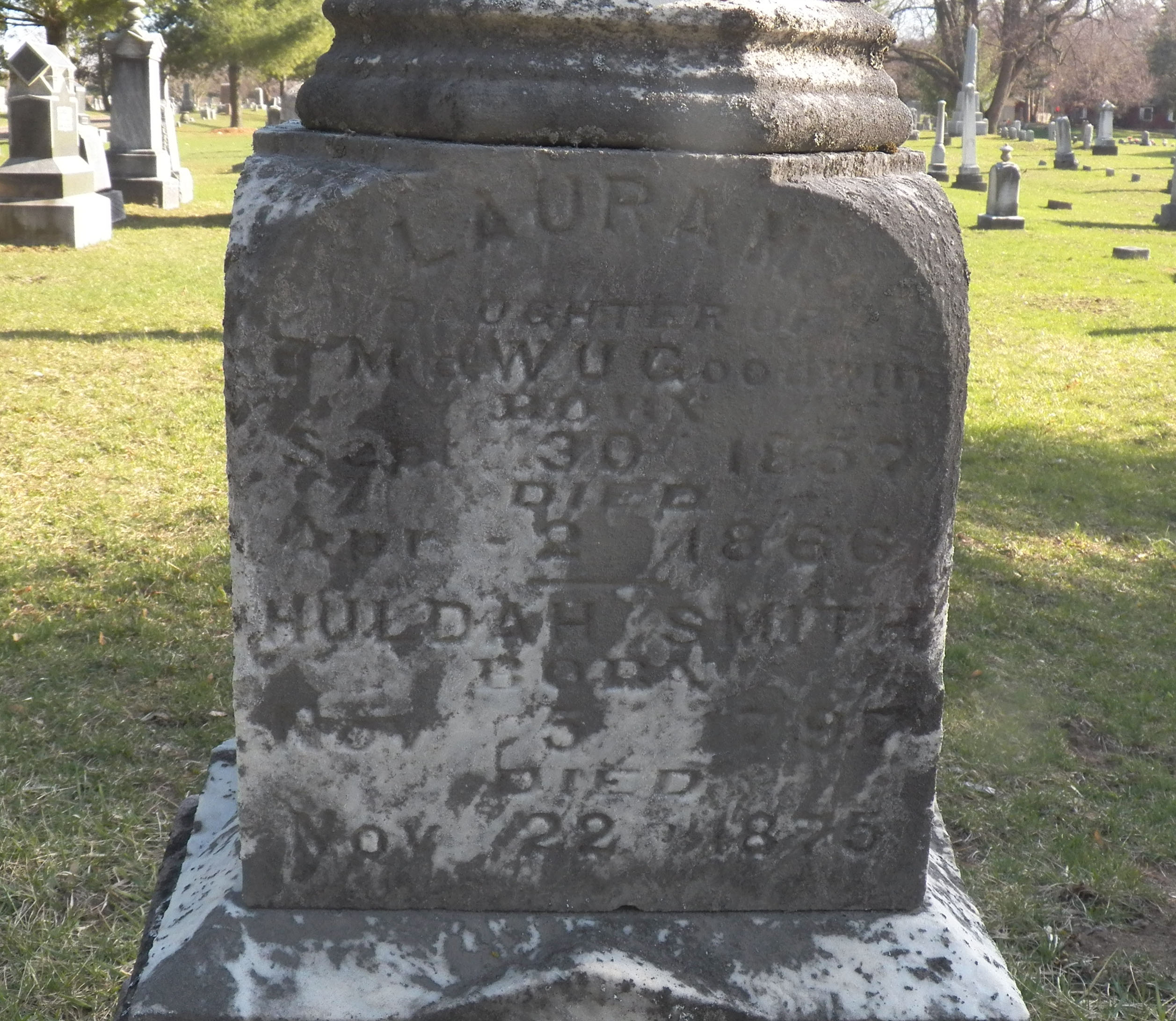 Note: Listed in burial records as “Hilda Smith, id# 4306, lot West 569. Buried in same plot as Burnett and Weltha Goodwin, her son-in-law and daughter.