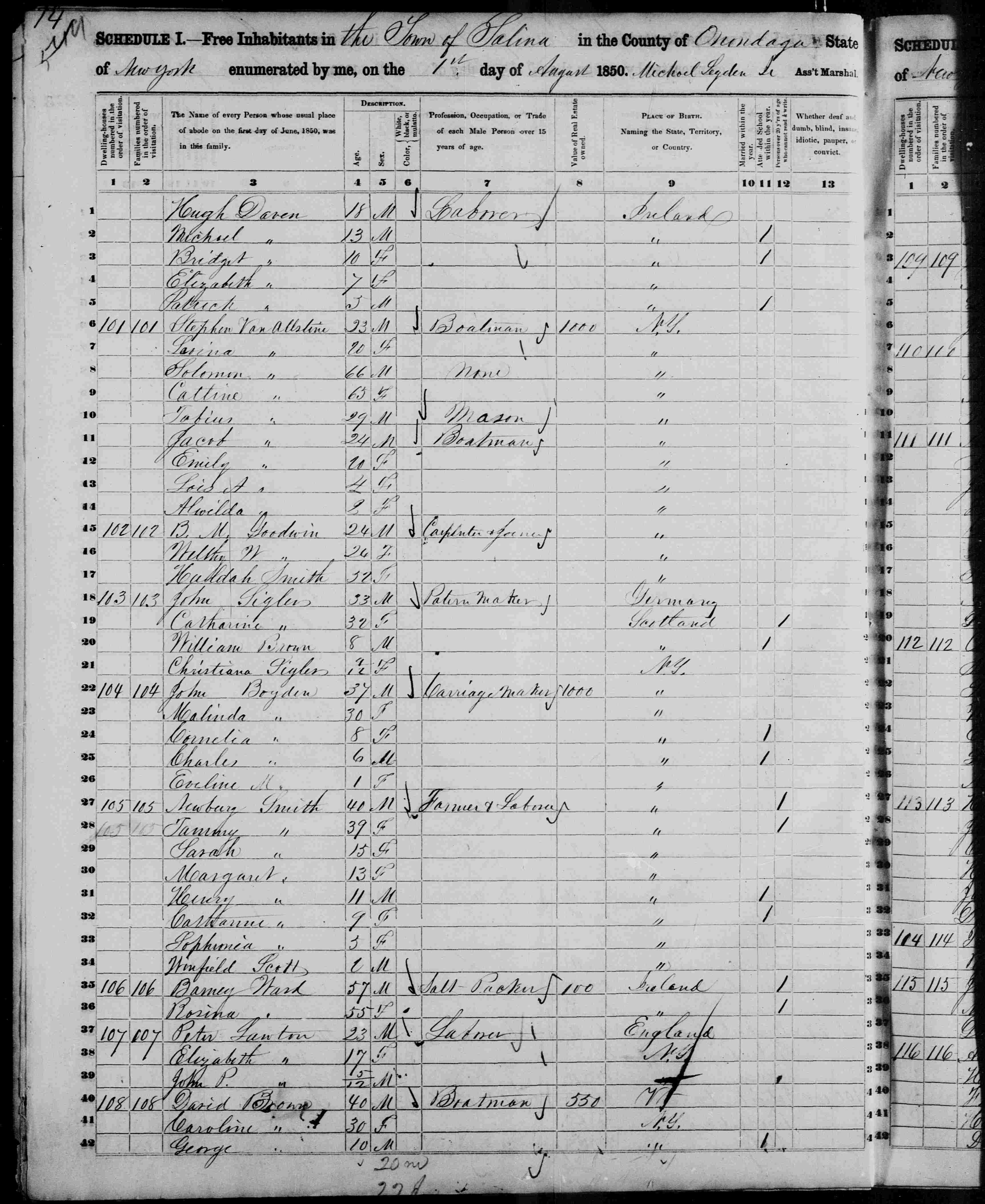 Note: The town name of Salina was later changed to Syracuse. Family records show that Reuben was born in Salina, however, we think we’ve found his family in New Haven on the 1820 census and his sister was later born in New Haven as well. So, it’s possible that Reuben was also born in New Haven.