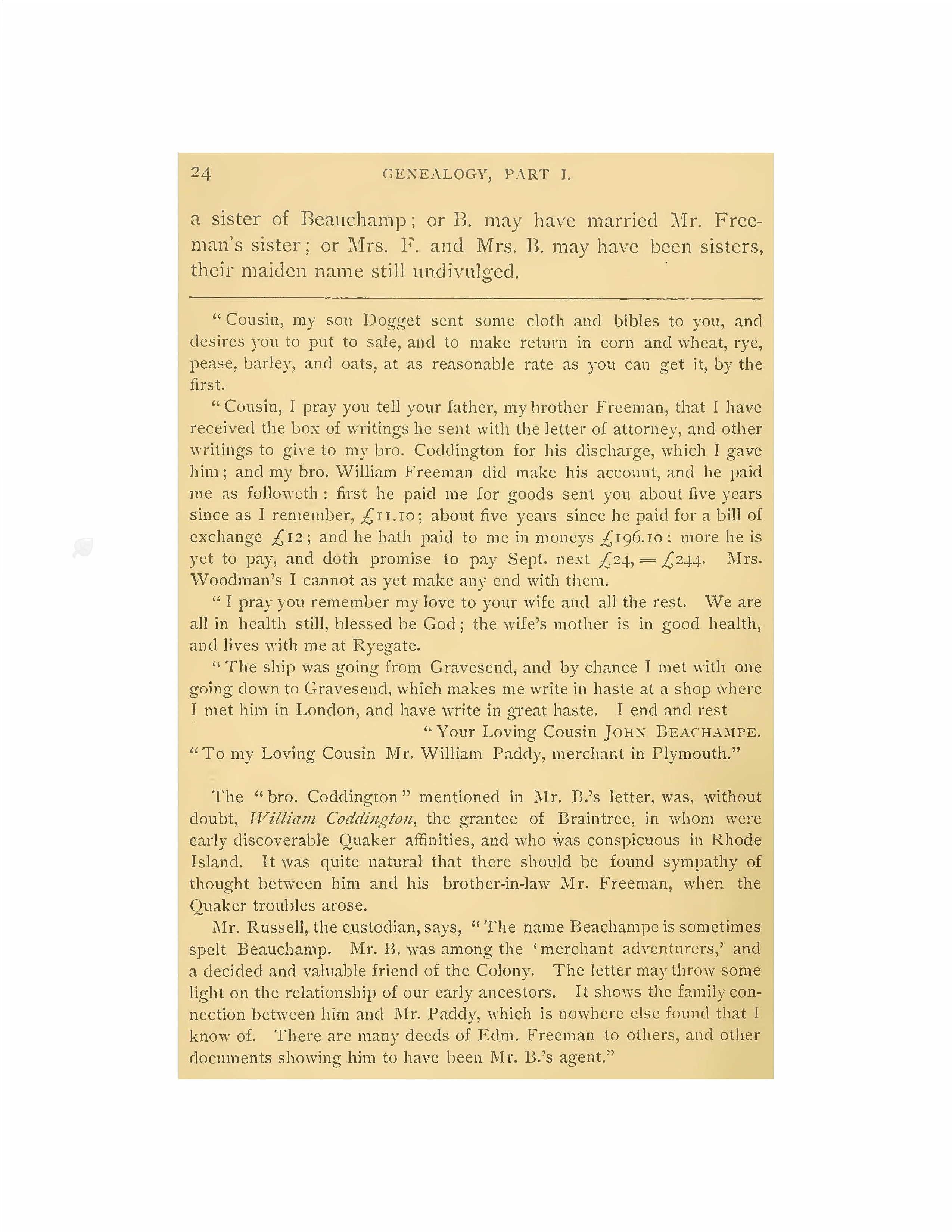 Note: Mr. Lewis, in his History of Lynn, says, “This year many new inhabitants appear in Lynn, and among them worthy of note Mr. Edmund Freeman, who presented to the Colony twenty corsletts, or pieces of plate armor.”