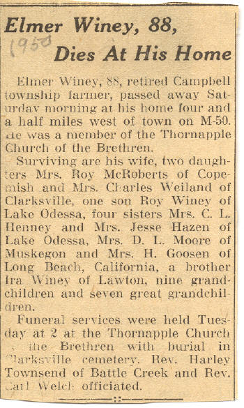 Note: Funeral services were held at the home and at the Thornapple Brethren Church.
