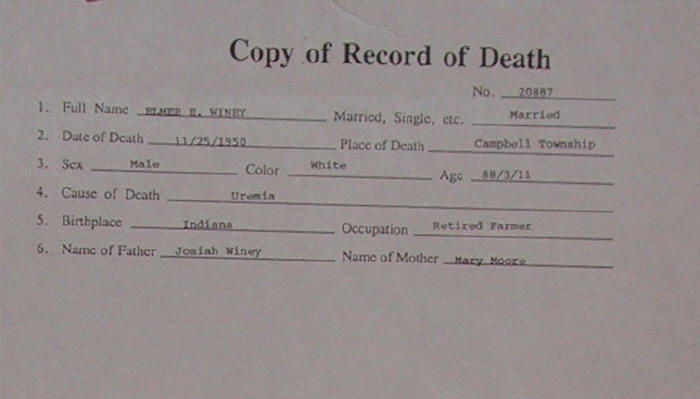 Note: 88 years, 3 months, 11 days old. Retired farmer. Died from uremia.