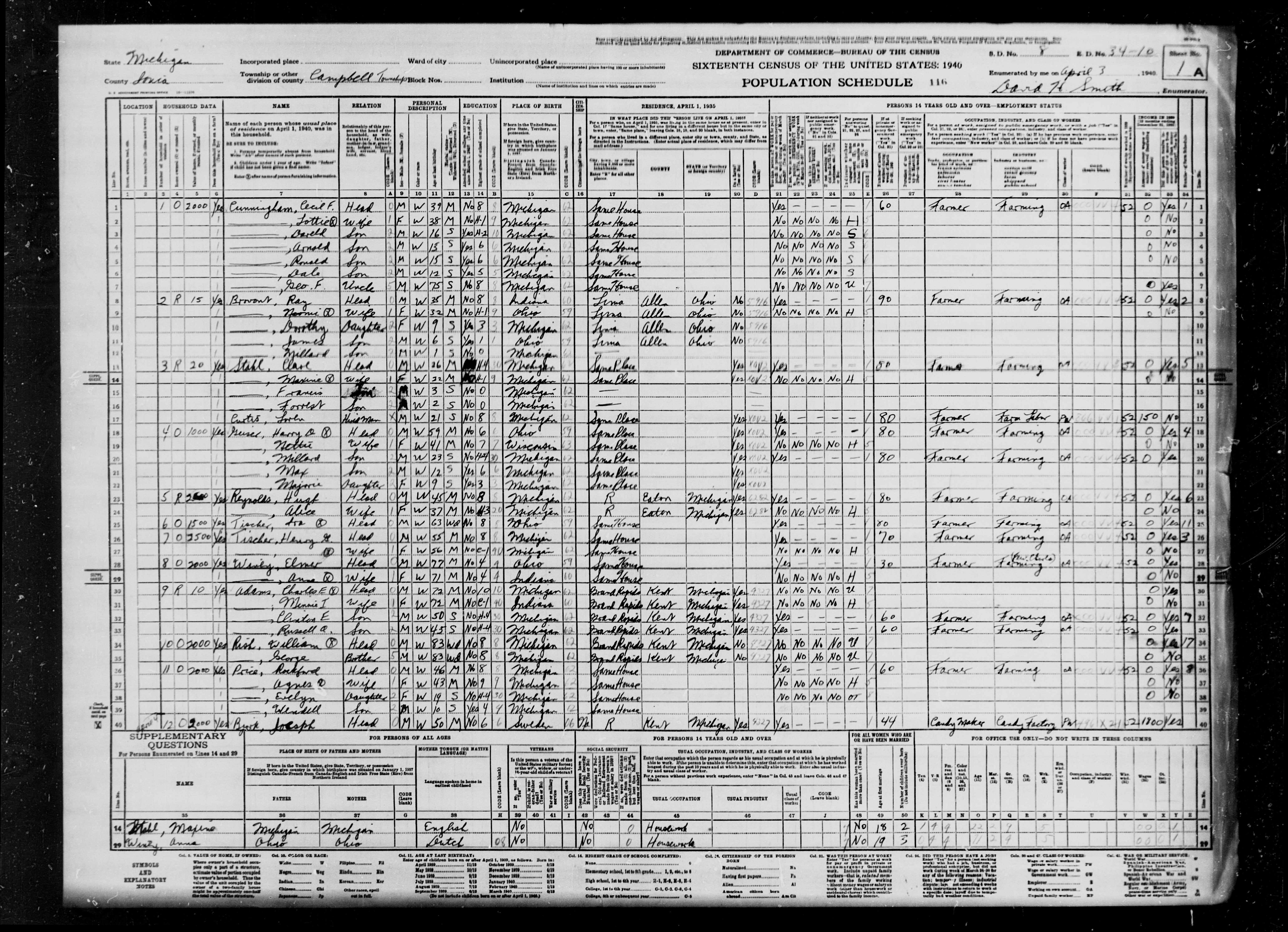 Note: Wife, Anna, is also in household. Living next door to their daughter, Ruth’s family.