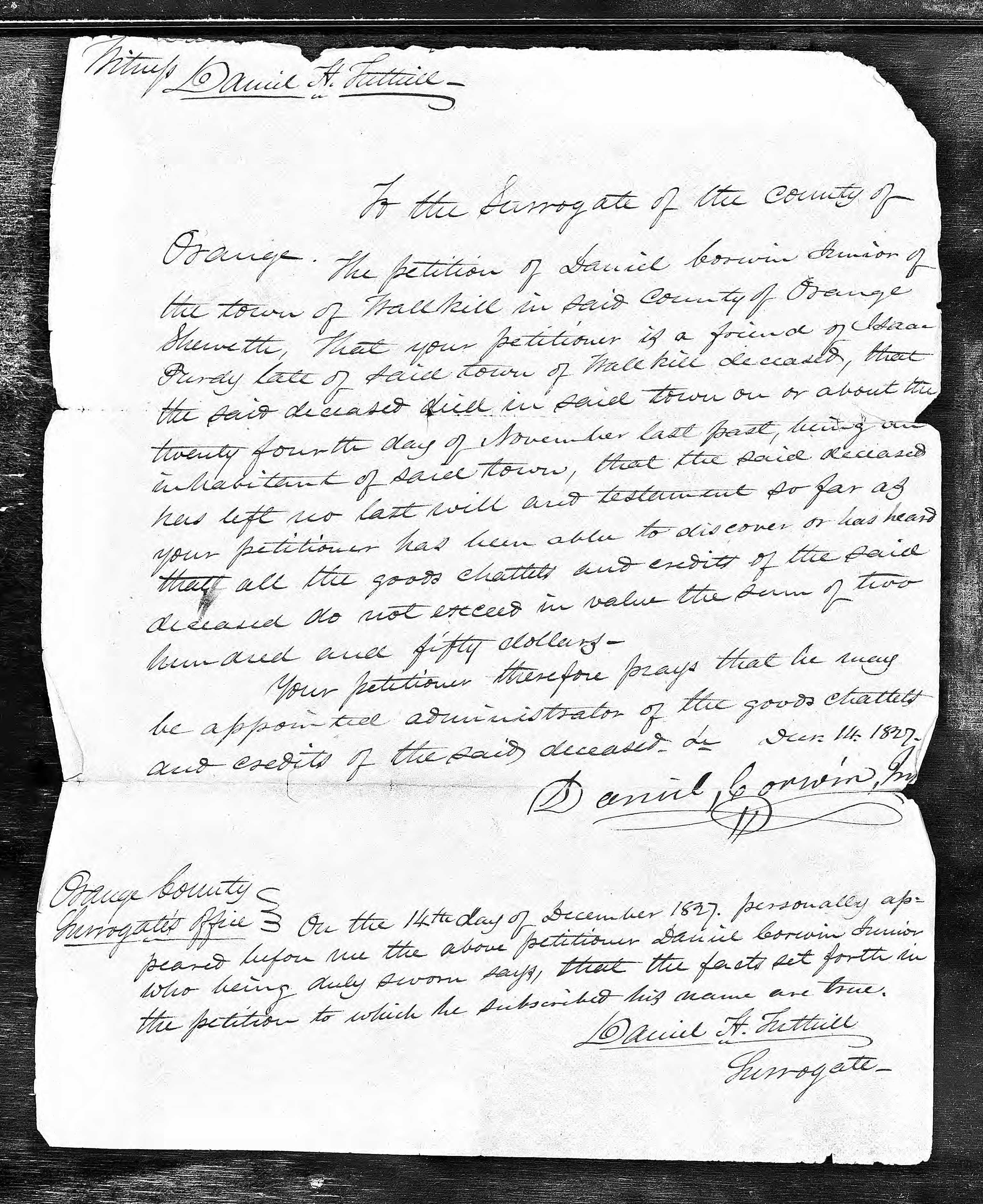 Death: 24 NOV 1827 Wallkill, Orange Co, New York