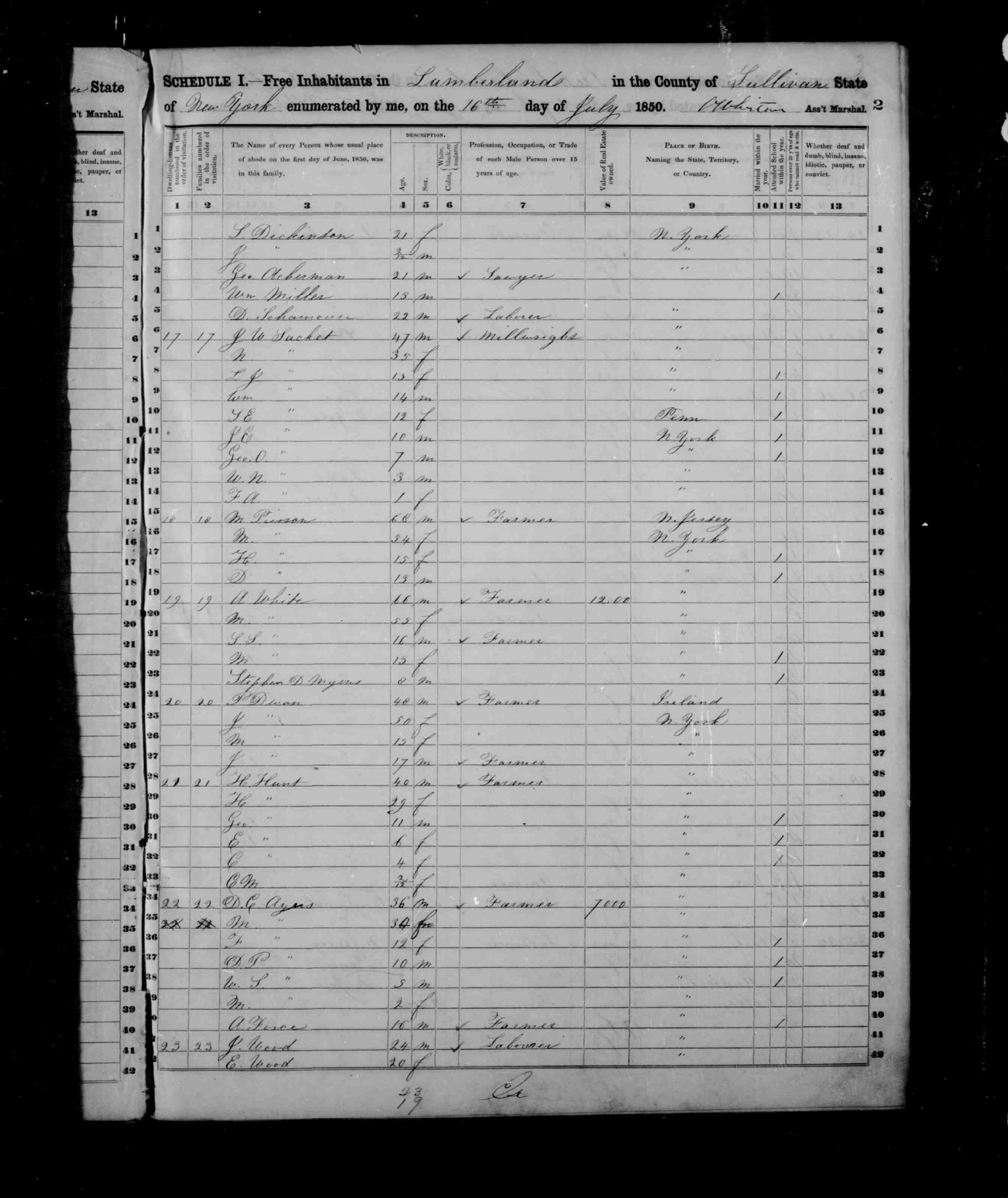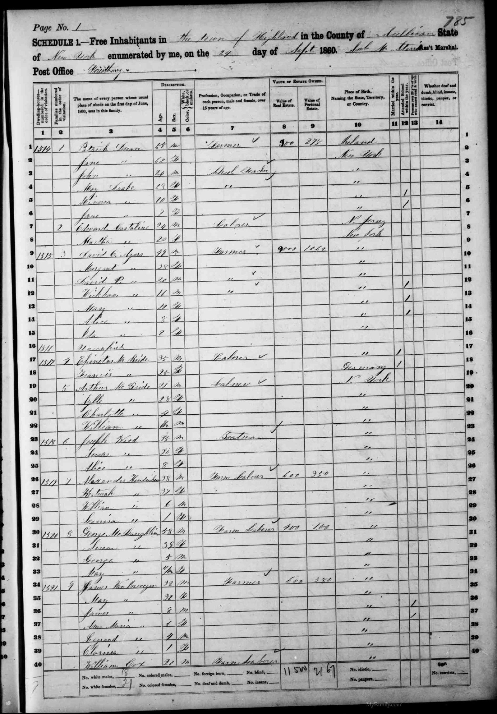 Note: Living with husband, Patrick, one son, a schoolteacher and her 2 children, and a laborer and his wife.