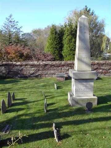 Details: He was buried on his own land in Newport, where his descendants have erected a monument to his memory, and enclosed the little family burial ground with a neat and substantial stone wall. It is situated on Coggeshall Avenue, near Victoria Avenue.