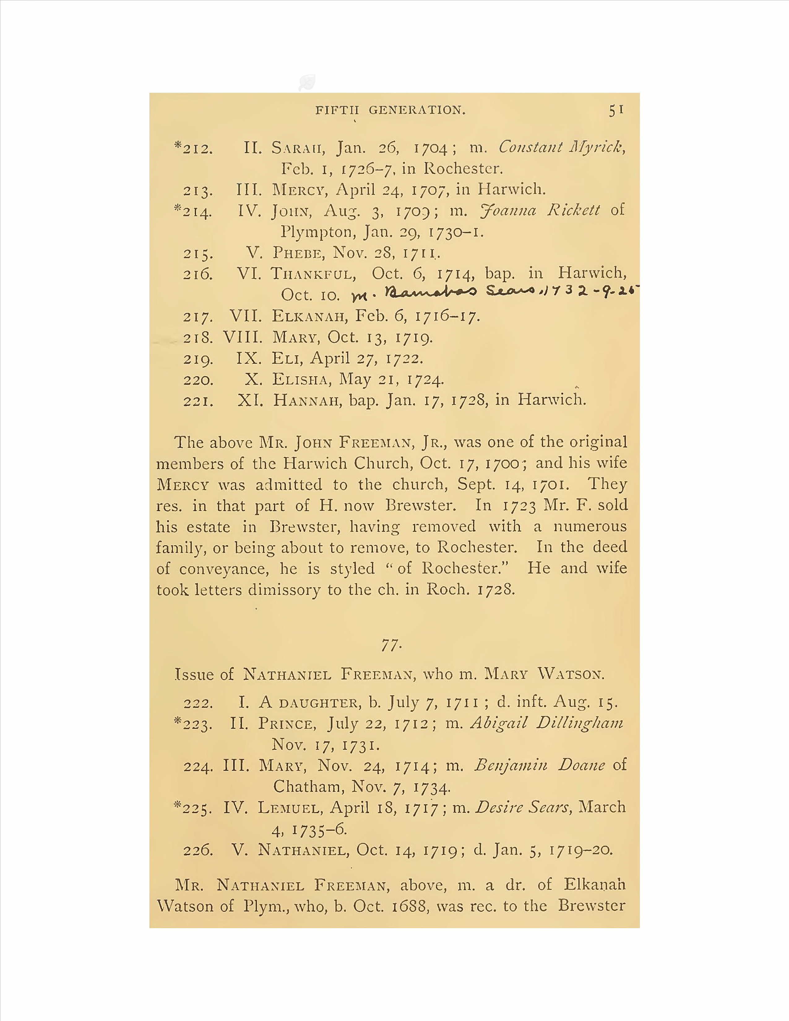 Note: John and his wife were admitted to the church. They reside in that part of Harwich now Brewster.
