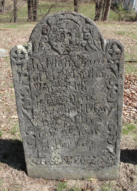 Inscription: In memory of Mrs. Martha wife of Mr. John Sims who died March 4 1763 in ye 88th year of her age.