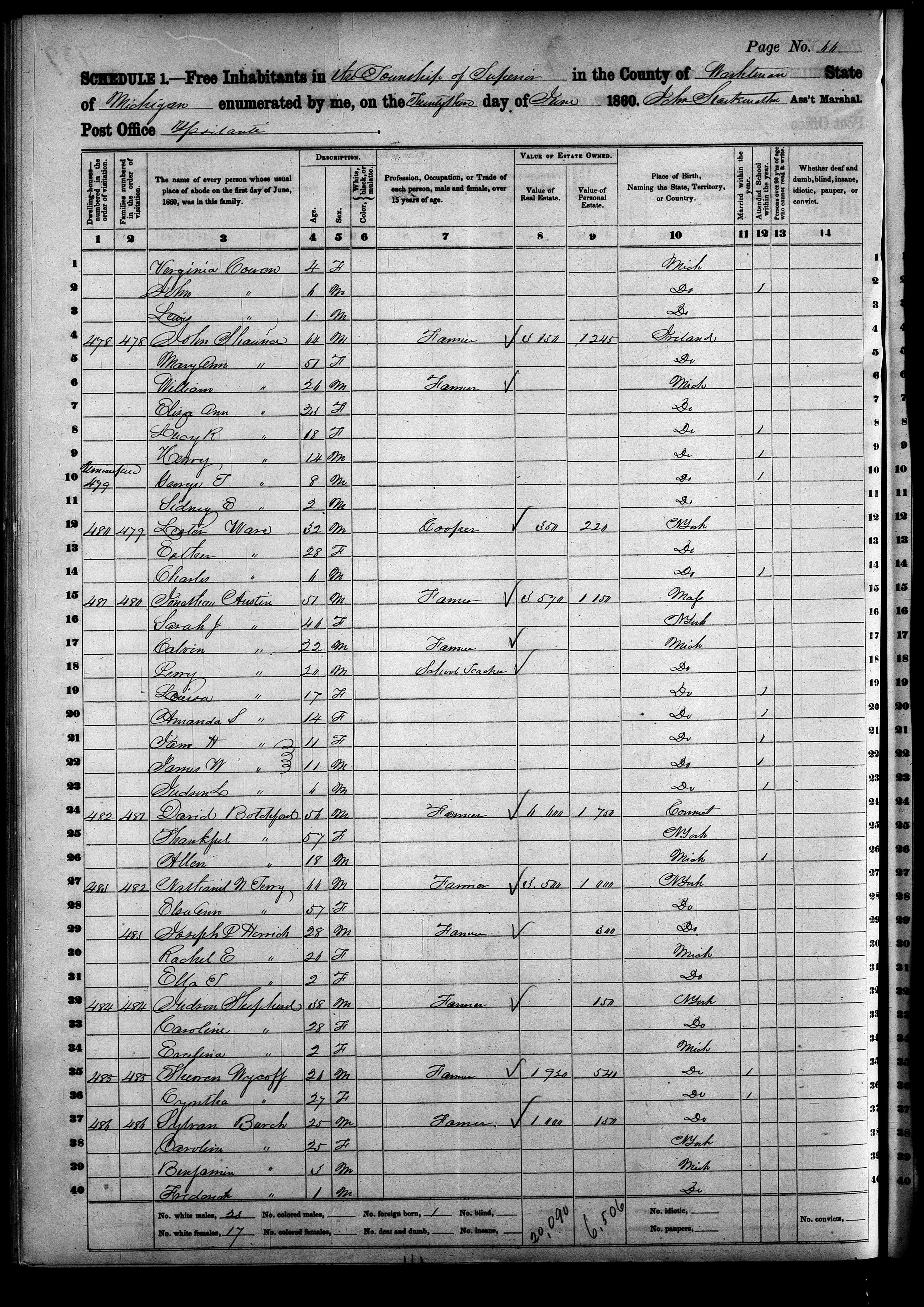 1880 Census: Handy Twp, Livingston Co, Michigan