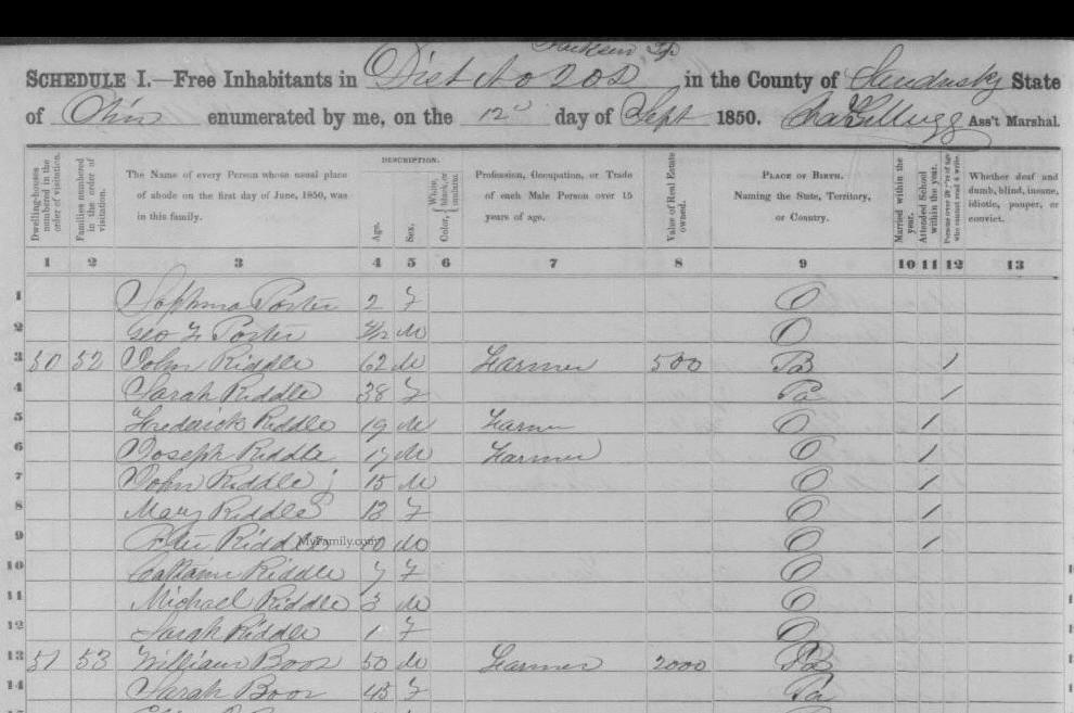 1850 Census: 16 OCT 1850