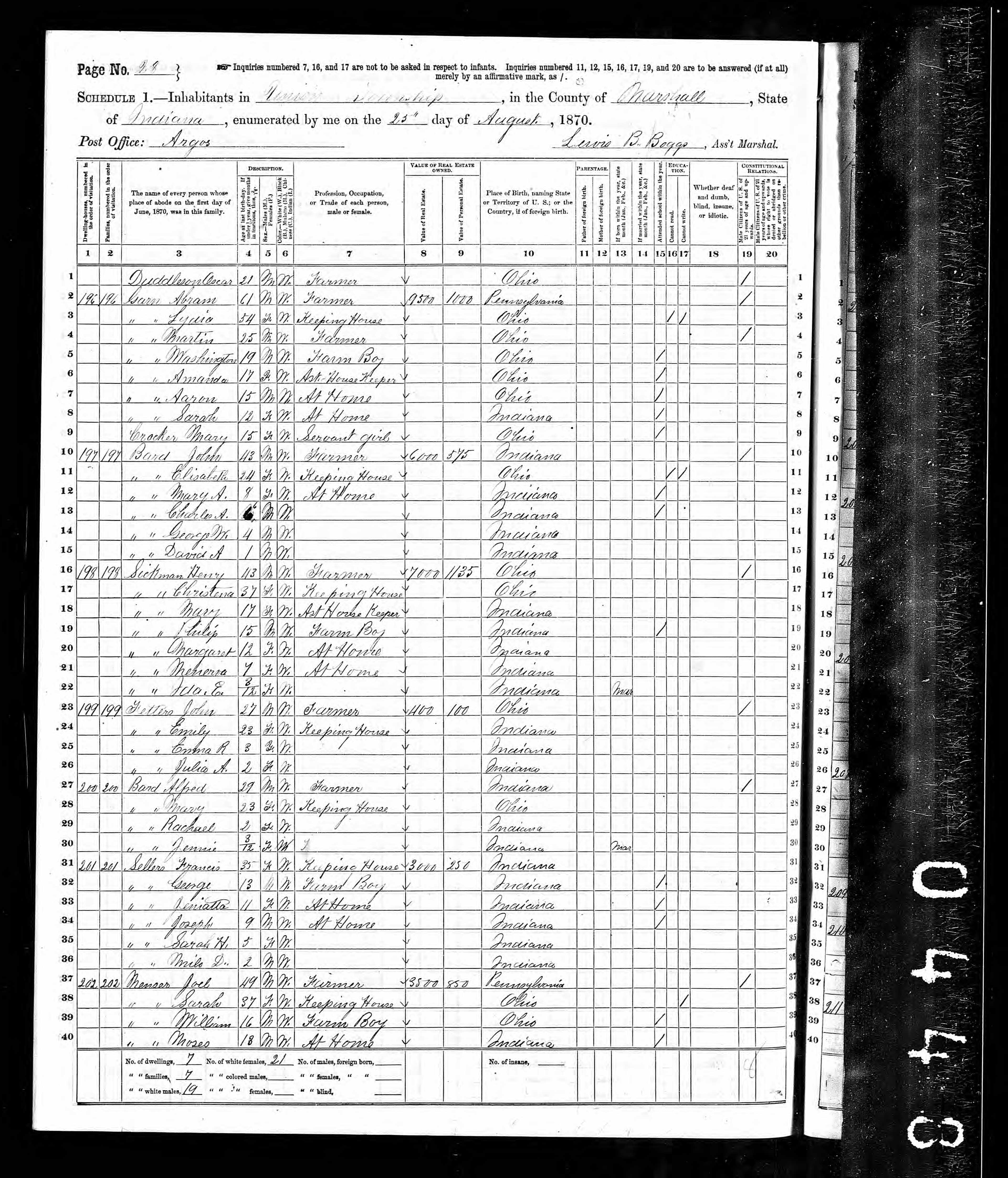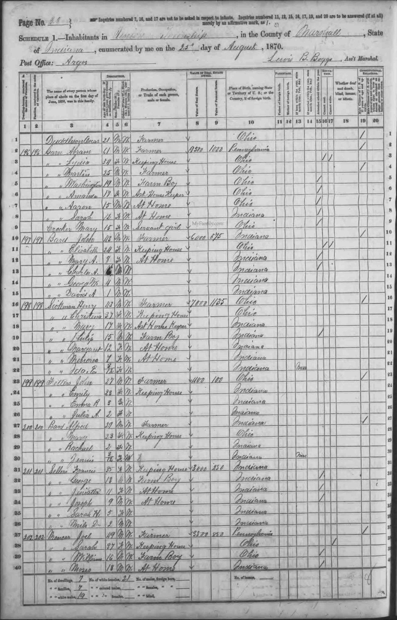 1870 Census: 25 AUG 1870
