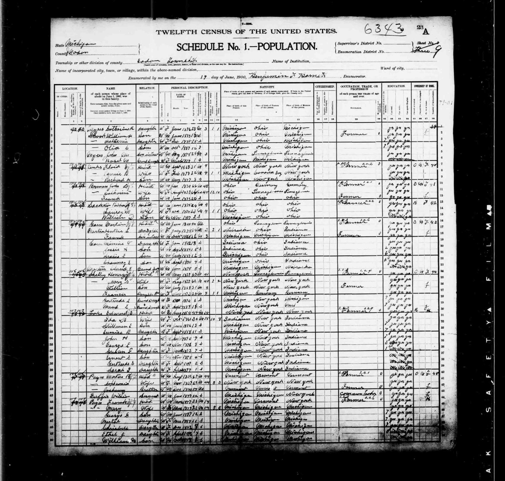 1900 Census: 19 JUN 1900