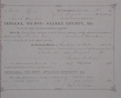 Marriage: 01 SEP 1870 Starke Co, Indiana