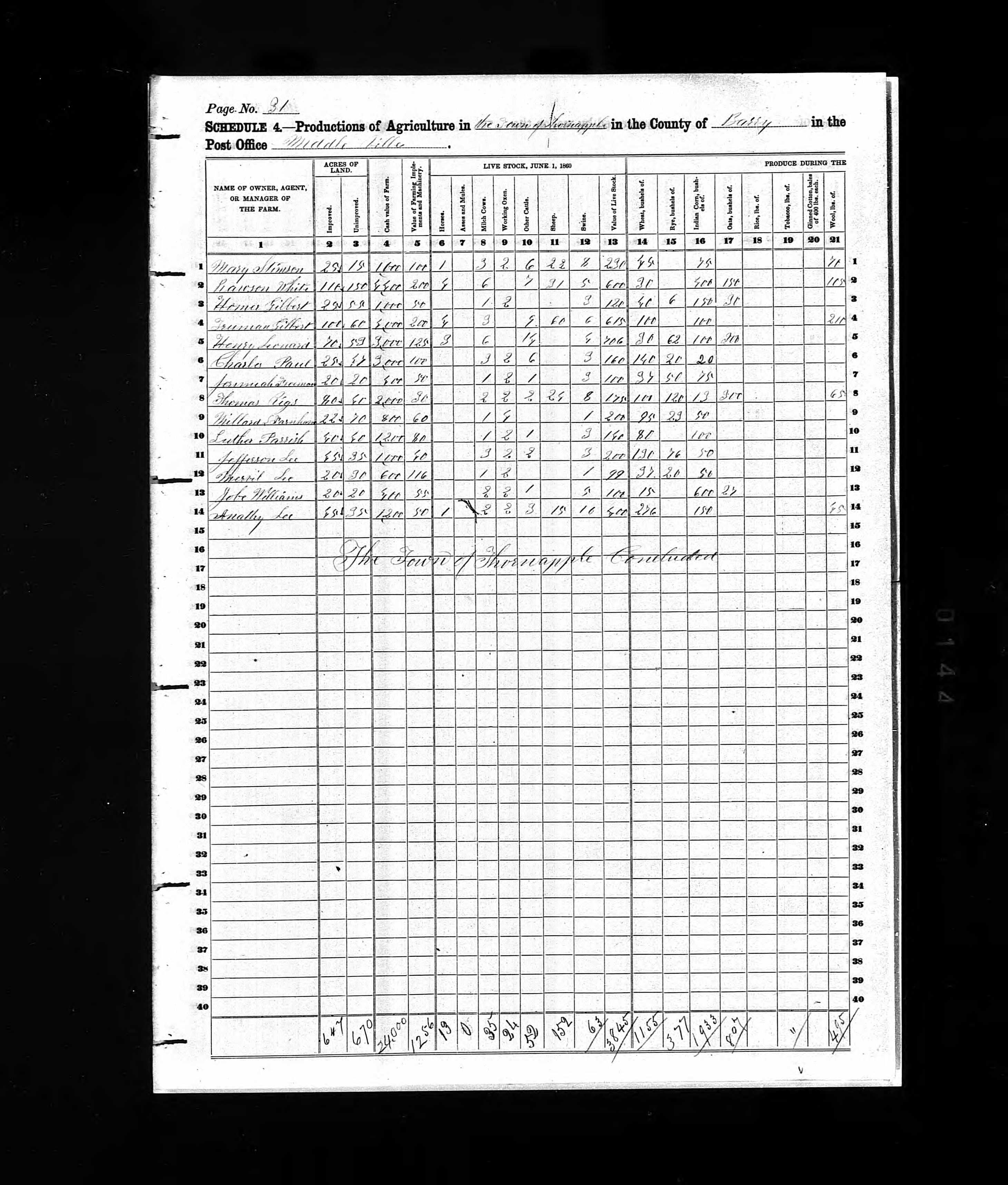 Note: Wife, Caroline, one child, and his mother are in his household. Was a farmer.