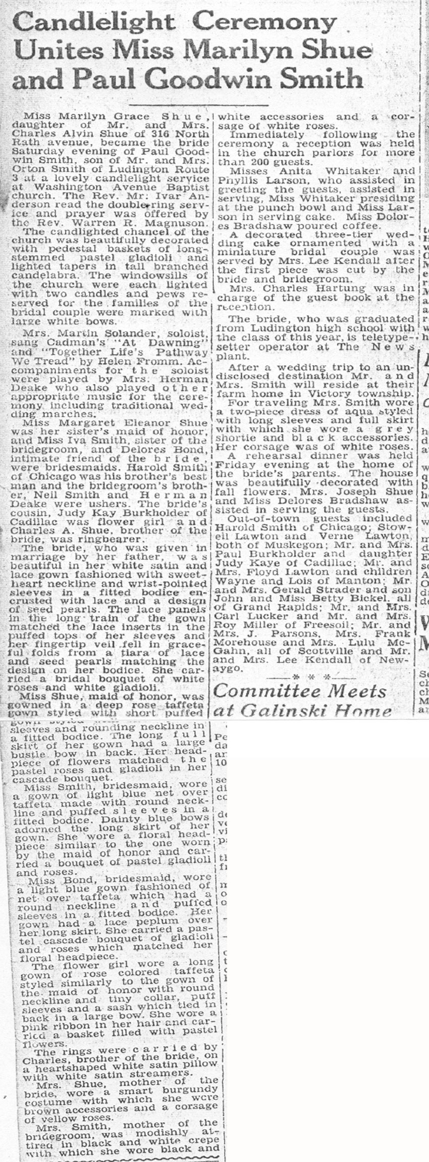 On October 9, 1948, Paul and Marilyn were married in Ludington. They settled on a farm next door to Paul’s parents, a homestead on Stiles Road