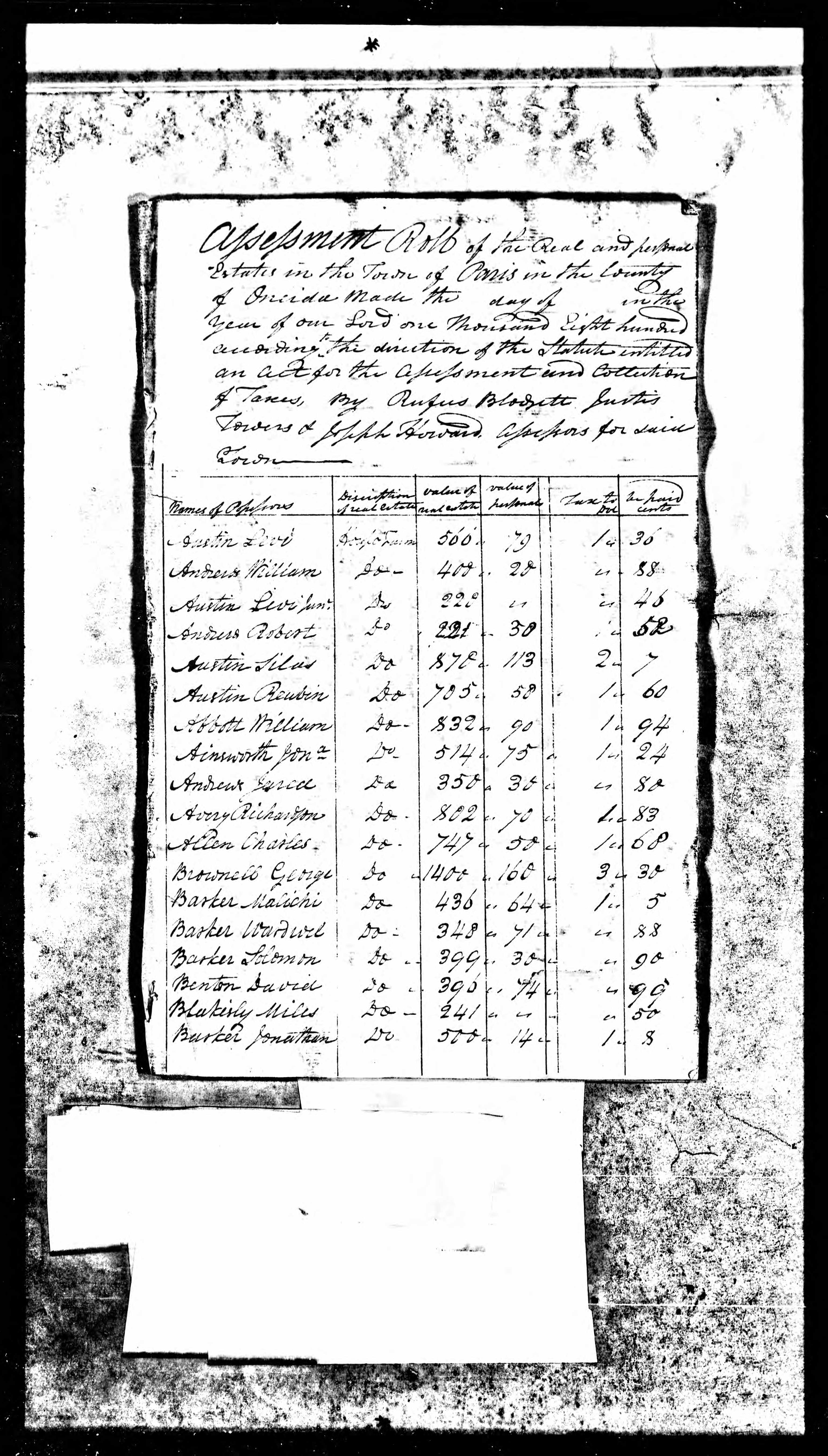 1800 Tax Assessment Rolls: Paris, Oneida Co, New York