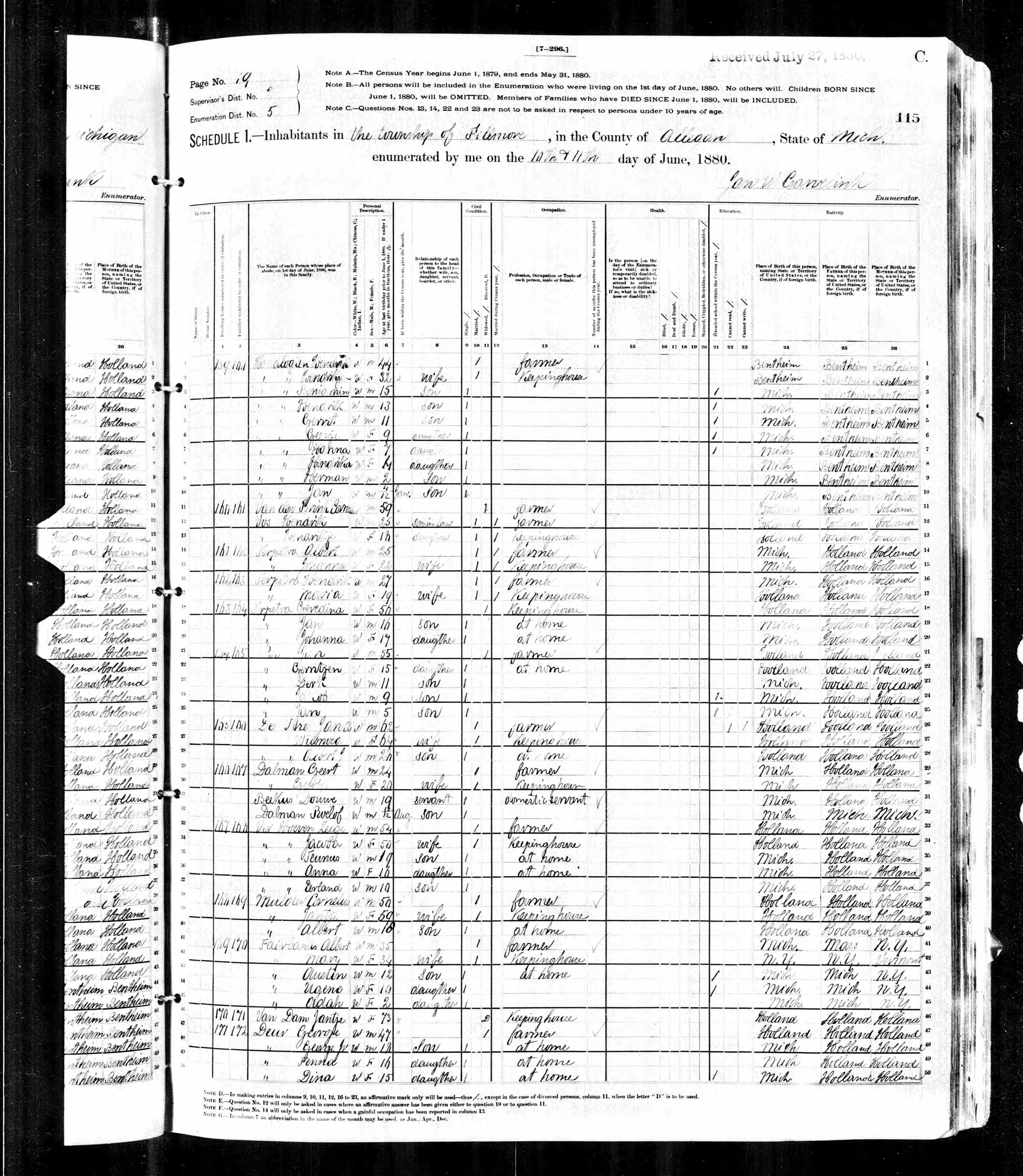 Note: Wife, Jacoba, son Teunus, daughter Anna, and son Eland are living in household.