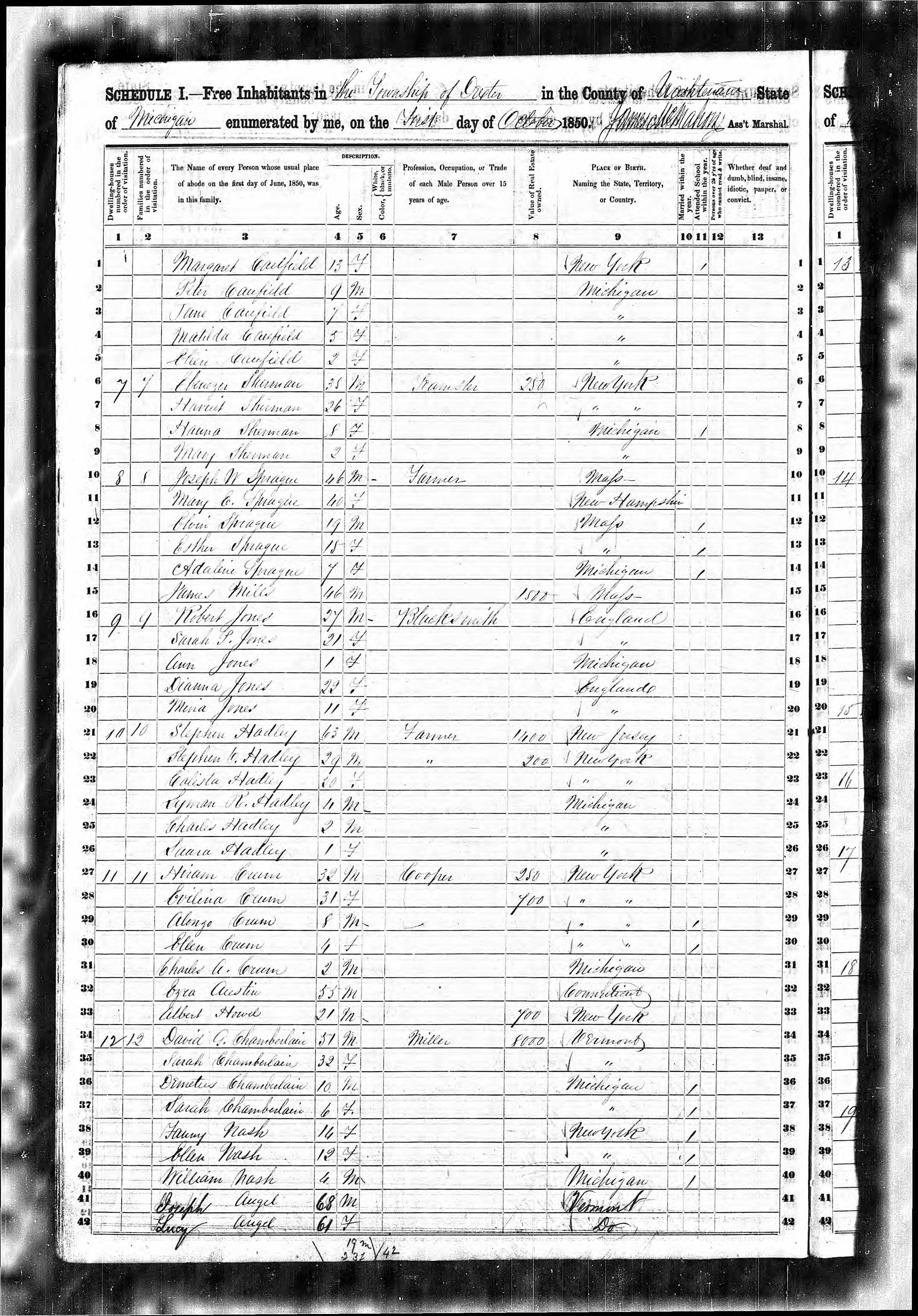 1854 Census: Dexter Twp, Washtenaw Co, Michigan