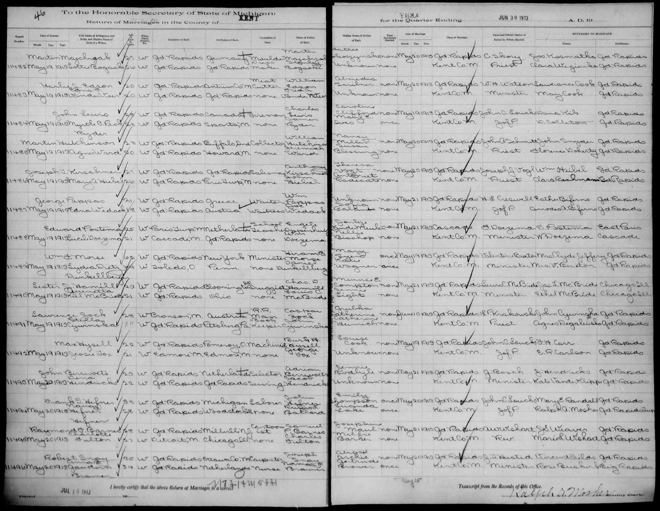 1st Marriage: 04 JUN 1873 Greenville, Michigan to Alice Lillian Blodgett